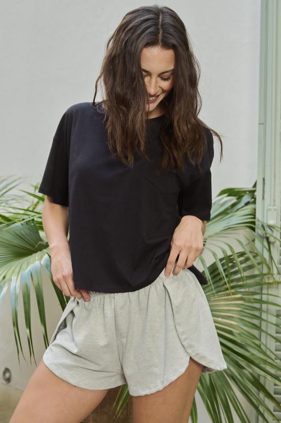 Pijama manga corta con bolsillo en el pecho. Short corte tulipan.